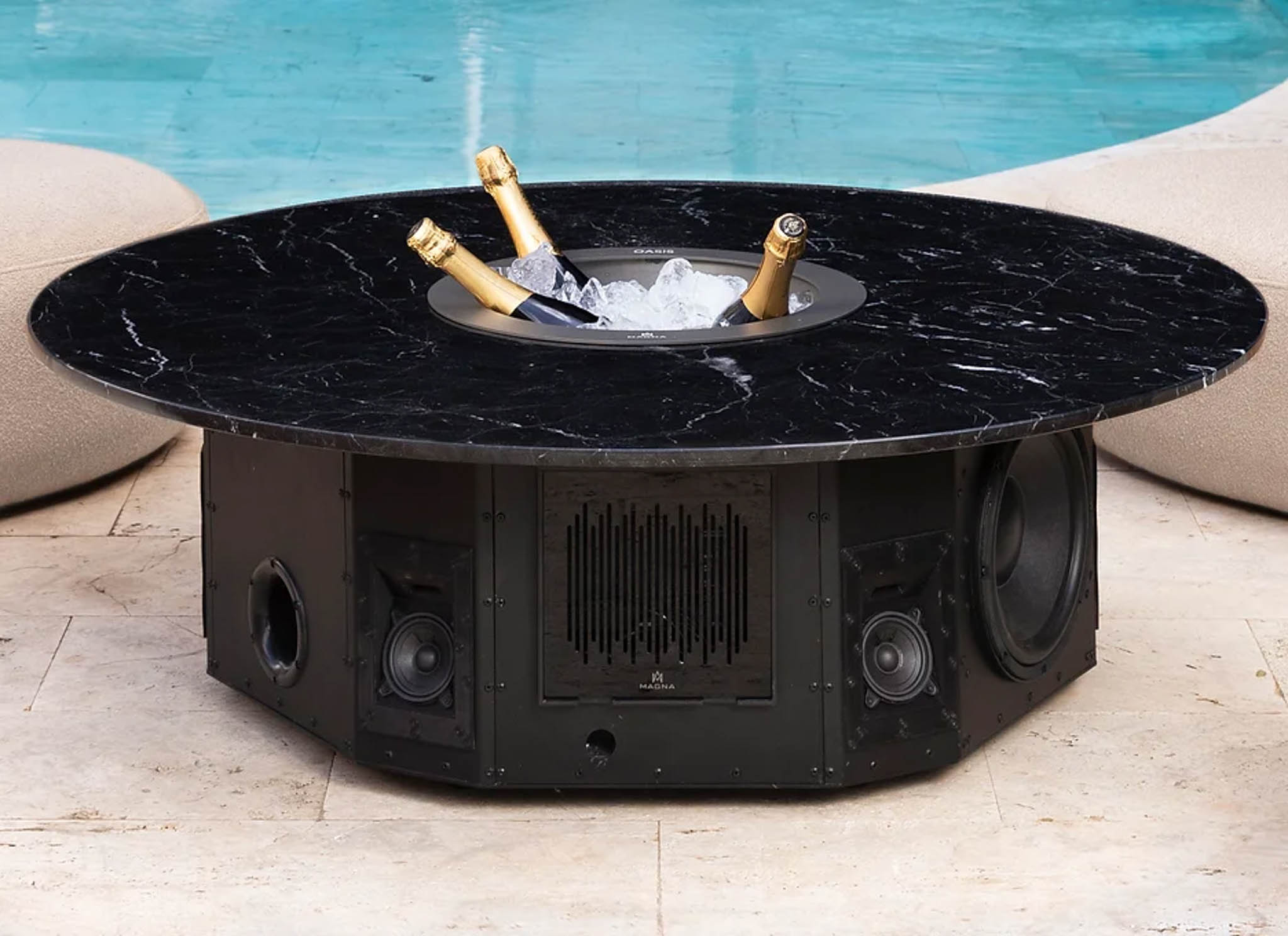 The Magna Oasis combines hi-fi wireless audio with patio furniture. The result is chic and highly fuctional coffee table that will fill your backyard with high quality sound.