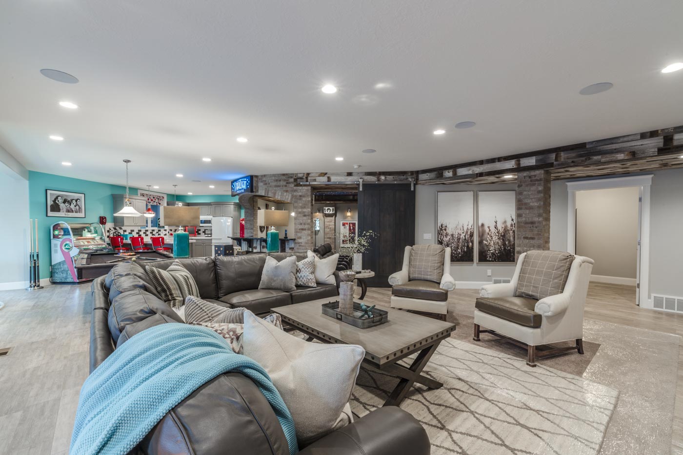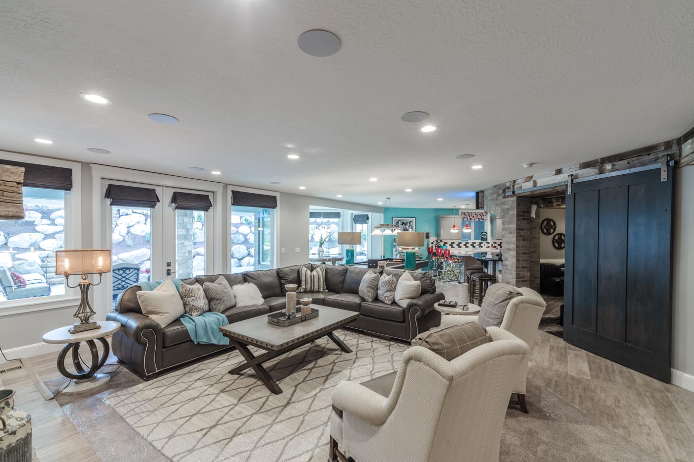 TYM designed and the systems for this award-winning open-concept home theater, as part of a 2016 Salt Lake Parade of Homes entry built by Tree Haven Homes.