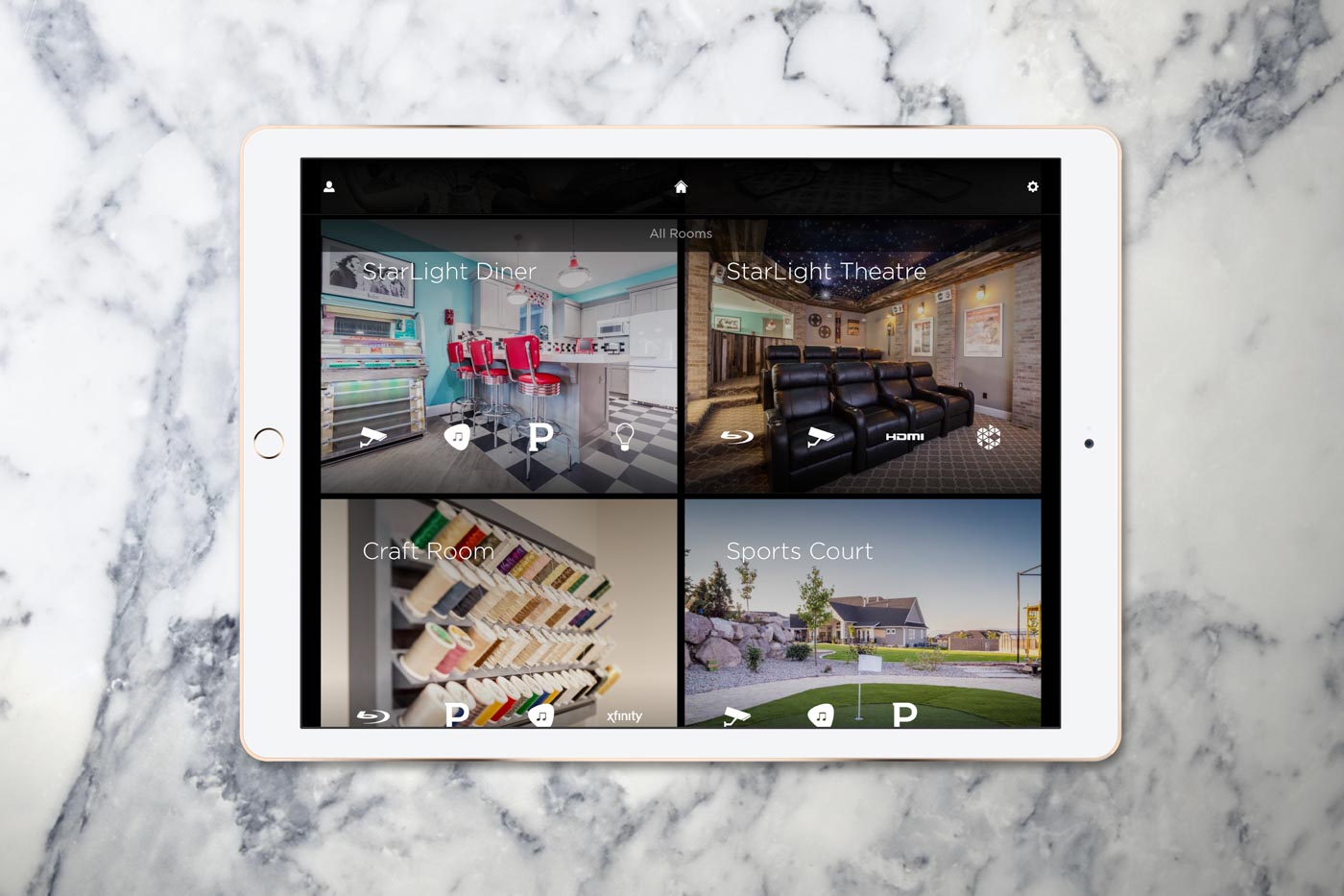 The room is easily controlled from the on-wall iPad, mobile devices, or the voice-controlled remote. Everything from the lighting to the video source to the volume is controlled with a simple touch or voice command.